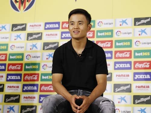 ビジャレアルでの入団会見に臨んだ久保建英