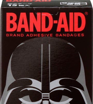 新たなラインアップとして「バンドエイド 救急絆創膏 スター・ウォーズ」として登場。絆創膏にはダース・ベイダー、R2-D2、ヨーダをはじめとする映画に登場する人気キャラクターや、ライトセーバーなど作品で使われるアイテムなど9種類のイラストがあしらわれている。