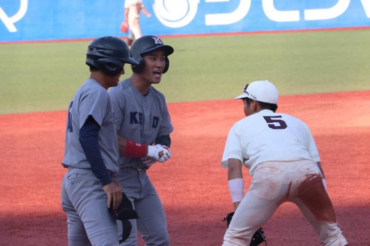 3回。早大のエースで主将・早川隆久(4年)から慶大の1番・新美貫太(3年)が先制2ランを放ったが、早大の9番・熊田任洋(1年)が反撃ソロ。6回に追いつかれた慶大だったが、7回に代打・藤元雄太(4年)の一発で勝ち越した。