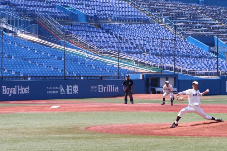 特別な一日だった。4か月遅れで始まった東京六大学春季リーグ戦。戦後初めて最終日以外に設定された「華の早慶戦」、応援団はいない、「紺碧の空」も「若き血」も鳴らない。代わりに神宮に響くのは蝉の声。新歓シーズンと重なる春は、3万人超が詰めかける年もあるが、前売り券は2日前に完売したものの、観衆は上限となる3000人。静けさが漂う神宮に選手は立った。