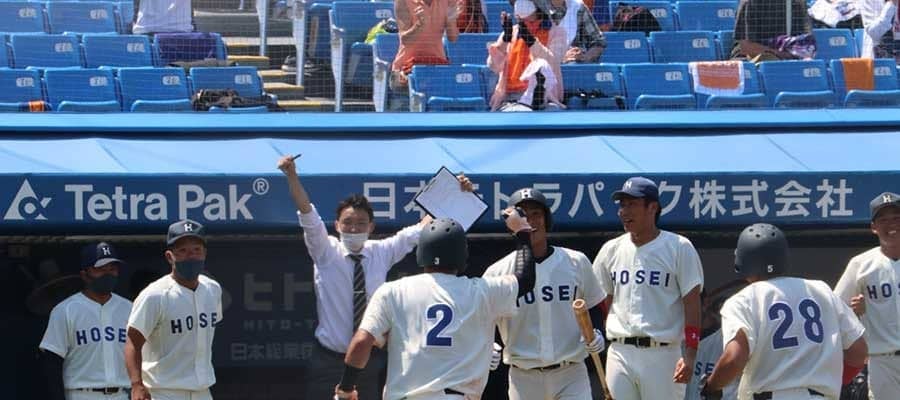 法大が4回に打者一巡の猛攻で5得点、7回に主将・中村の一打で突き放す