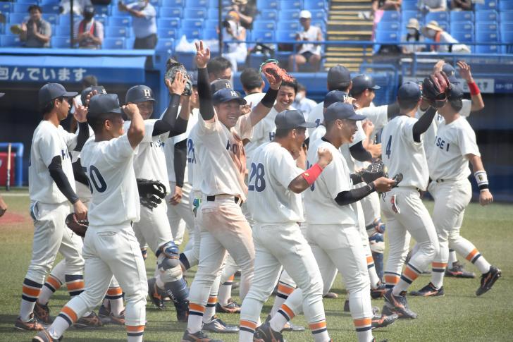 法大が『夏の陣』を制した。2018年春以降、実に4季に渡り慶大から勝ち点を奪えていない法大は、その『因縁の相手』と優勝をかけて今日の試合に臨んだ。序盤は先発・鈴木昭汰(キャ4)が慶大打線につかまり、苦しい展開に。しかし、4回に宮﨑秀太(営2)のリーグ戦初本塁打となるソロ本塁打を放つと、それを皮切りに反撃を開始。打者一巡の猛攻で5得点を挙げ、逆転に成功する。その後も盤石な救援陣がきっちりと仕事を果たし、7回には中村迅(営4)のダメ押し適時二塁打が飛び出すなど、試合は法大ペースで進む。9回裏を山下輝(営3)が0で抑え、開幕4連勝。この試合に続いて行われた第2試合で早大が勝利したため、連盟規定により法大の3季ぶり46回目のリーグ優勝が決まった。