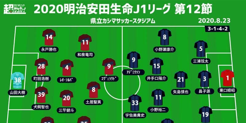 【明治安田生命J1リーグ第12節】 2020年8月23日(日) 19:00キックオフ 鹿島アントラーズ vs ガンバ大阪…