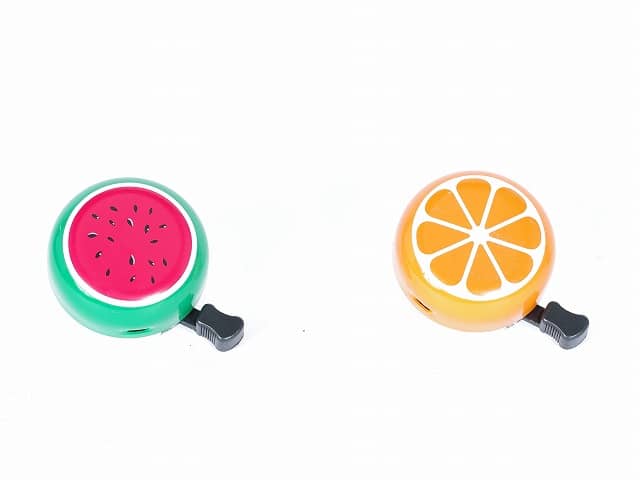 【参考商品】オレンジ・スイカベル レインボープロダクツ おいしそうなツヤのあるベル。バイクのアクセントに。1,000円(税抜)