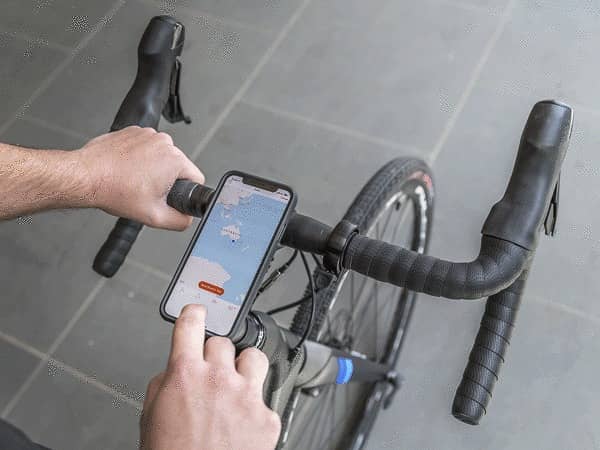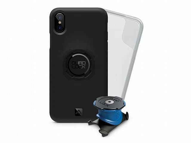 【参考商品】 BIKE KITクアッドロック スマートフォンにカバーを装着し、ハンドルに付けたマウントに固定する。ポリカーボネイト製カバーは衝撃にも耐える強固な安全性を持ち、タイラップで装着すれば80kgもの荷重にも耐えられる。スッキリしたシルエットとマットな手触りも人気。7,260円〜(税抜/価格はスマートフォン機種により異なる)