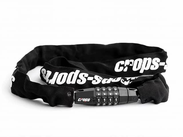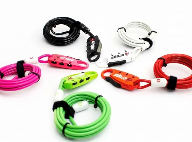 全長180cmのロングケーブルで前後のホイールやサドルに通してロックできる。仲間同士で出掛けても、複数のバイクを束ねて施錠することもできる。多彩な色展開も嬉しい。丸めて収納でき、123gと、軽量で持ち運びも楽々 CP-SPD07 クロップス 1,900円(税抜)