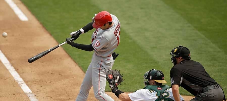 アスレチックス戦の3回に飛距離約134メートルの特大の一発を放った大谷翔平■アスレチックス 5-4 エンゼルス(日本時間…