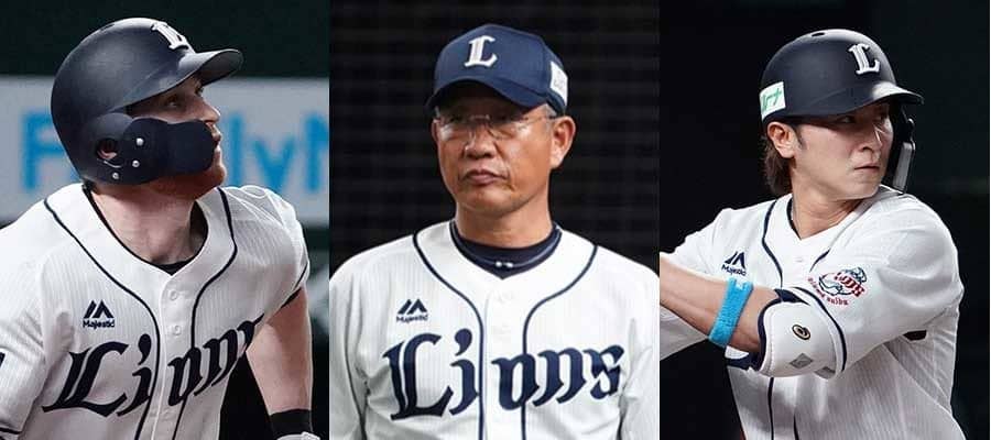 西武のコーリー・スパンジェンバーグ、辻発彦監督、金子侑司(左から)【写真:荒川祐史】