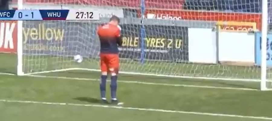 まさかのミスを犯し頭を抱えるウィコムのGKストックデイル(画像はサム・インカーソレ記者のツイッターより)