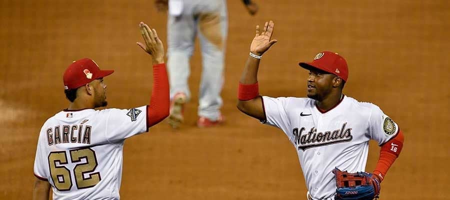 好返球を見せたナショナルズのビクター・ロブレス(右)【写真:Getty Images】
