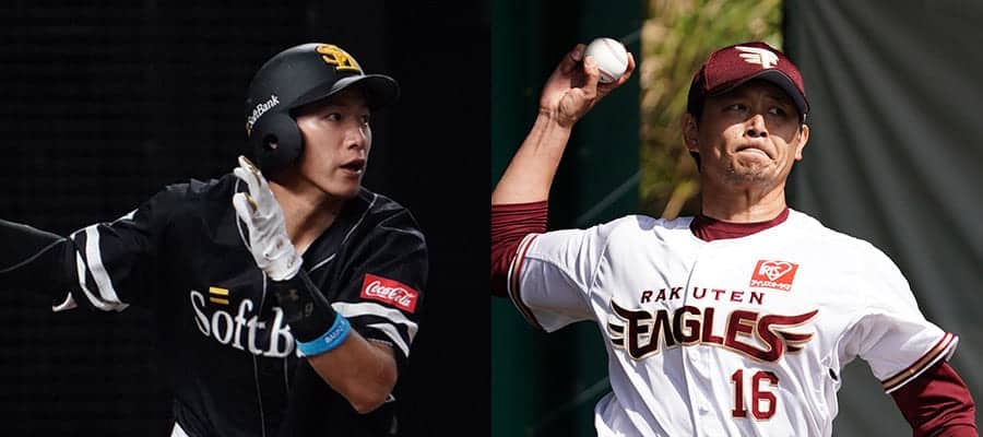 ソフトバンク・柳田悠岐(左)と楽天・涌井秀章【写真:荒川祐史】