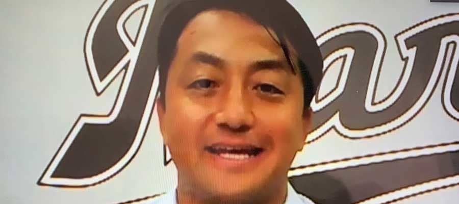 巨人からロッテへのトレードでオンライン入団会見に臨んだ澤村拓一(左)【写真提供:千葉ロッテマリーンズ】