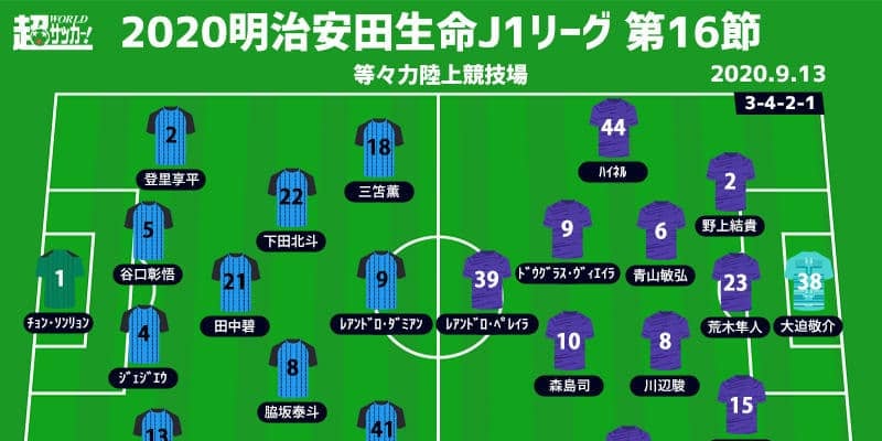 【明治安田生命J1リーグ第16節】 2020年9月13日(日) 18:30キックオフ 川崎フロンターレ(1位/41pt)…