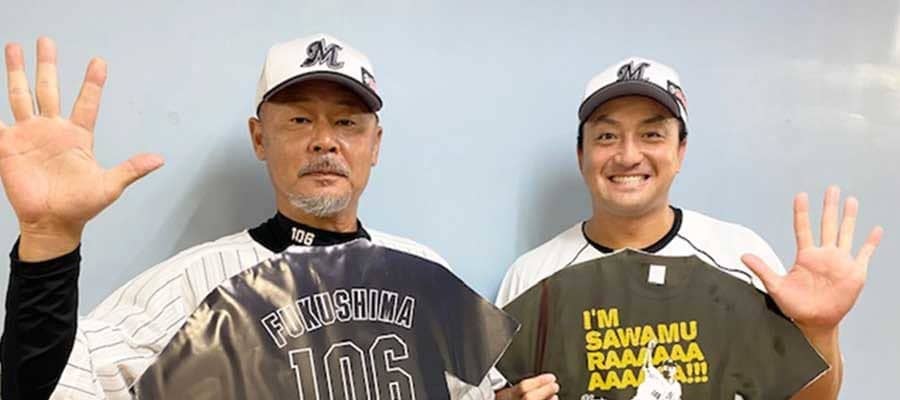 背番号「106」の福嶋打撃投手(左)と澤村拓一【写真提供:千葉ロッテマリーンズ】