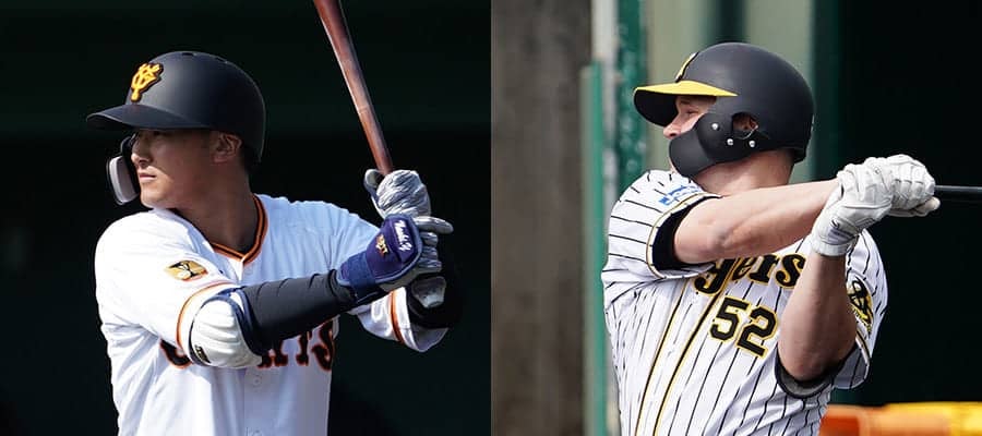 巨人・吉川尚輝(左)と阪神のジェリー・サンズ【写真:荒川祐史】