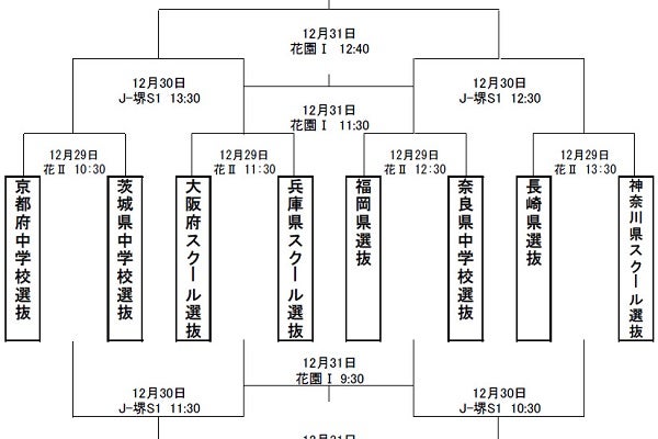 第1ブロックでは、前回大会で初優勝を遂げた兵庫県スクール選抜が1回戦で大阪府スクール選抜と対戦することが決まった。第2ブロックでは、連覇を狙う愛知県中学校選抜が1回戦で東京都スクール選抜とぶつかる。