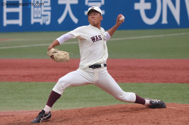 先発・早川は、150キロ前後の真っすぐと130キロ台後半のスライダー、さらには120キロ前後のカーブを駆使した緩急自在な投球を披露。変化球主体の組み立てを見せたかと思えば、力強い直球による三球勝負を行うなどして明大打線を全くと言っていいほど寄せ付けなかった。最終回に失点して完封こそは逃したものの、完投勝利を挙げただけでなく、奪三振数は驚愕の17個に達した。絶対的エースの貫禄の投球に、小宮山悟監督(平2教卒=千葉・芝浦工大柏)をして「前半終了時点で勝ちを確信した」と言わしめるほどだった。