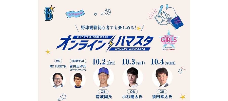 今回は選手の人柄などの魅力を沢山知ってもらうため、選手がミニゲームに挑戦するオンラインハマスタ限定のスペシャル動画の公開や、勝利時には選手が通常のヒーローインタビューとは別に再度登場する「アンコールヒーローズ」の実施を予定している。