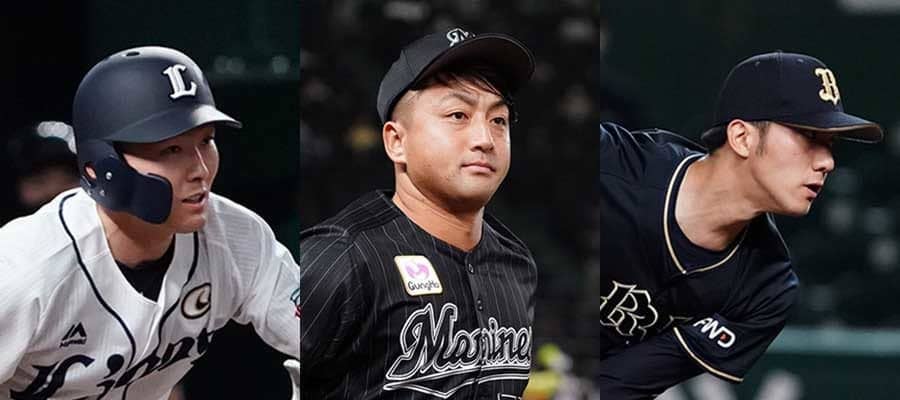 西武・源田壮亮、ロッテ・澤村拓一、オリックス・田嶋大樹(左から)【写真:荒川祐史】