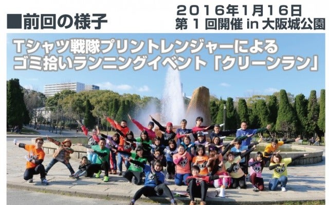 「クリーンラン」は、Tシャツ戦隊プリントレンジャーとして大阪城公園でランニングをしながら清掃活動を行うファンランだ。大阪城の風景とヒーローになりきって行う清掃活動を楽しむ。参加特典には、ヒーローTシャツを用意。クリーンランをテーマに、好きなデザインのオリジナルTシャツを作成して参加する。