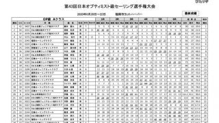 ワールド選考。福岡小戸・西日本420級ヨット選手権成績