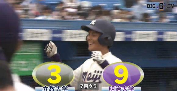 立教大学 3 - 9 明治大学勝:西城 敗:中﨑本塁打:明大・藤江 1号(7回裏)連日の打線爆発!明大が2連勝!立大・中…