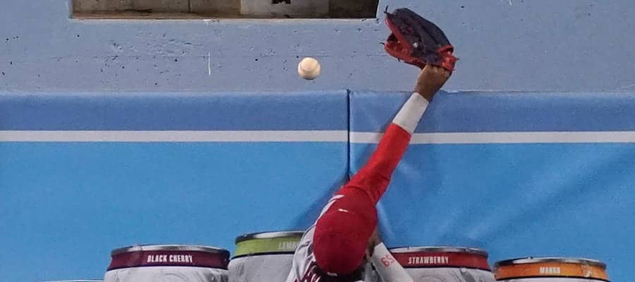 フェンスを越える打球にジャンプ一番で好捕…グラブで打球を弾きスタンドイン