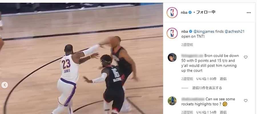 レブロン・ジェームズの「高速ノールックパス」を分析(画像はNBA公式インスタグラムより)
