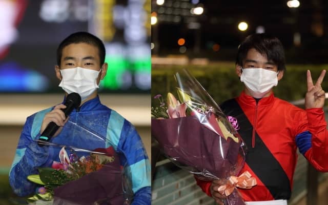 船橋ラウンドで勝利を挙げた秋山稔樹騎手(左)と池谷匠翔騎手(撮影:高橋正和)