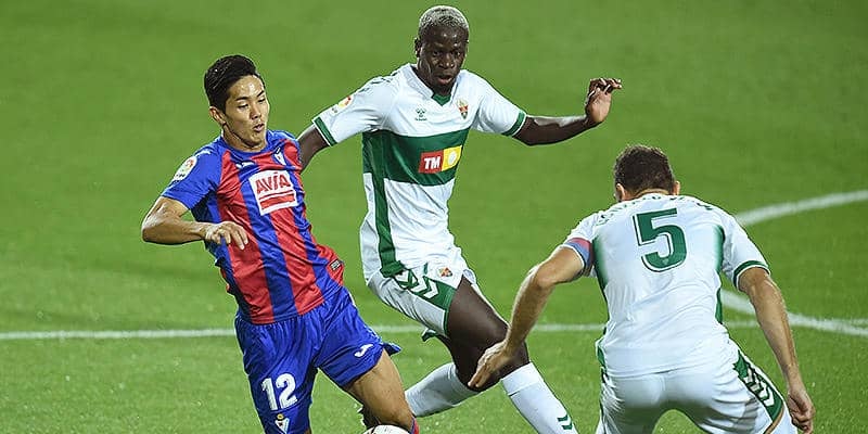 2トップの一角に武藤、左MFに乾を左配置したエイバルは、積極的な入りを見せた昇格組のエルチェに対し、やや後手に回ったが時間の経過とともにボールの主導権を掌握。