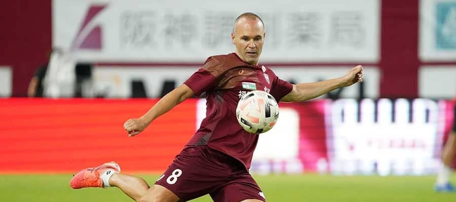 神戸のユニフォーム姿でシュート、躍動感たっぷりの写真が話題 サッカーJ1神戸の元スペイン代表MFアンドレス・イニエスタが…