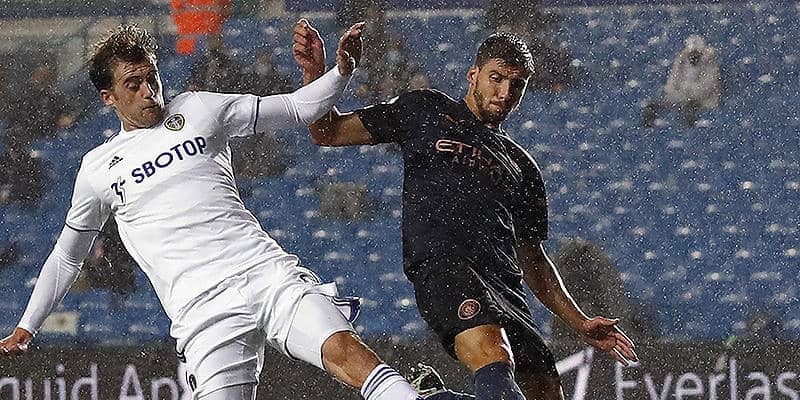 前節の3バックから4バックに変更したリーズに対して、シティは相手の出方を窺うことなく攻勢に転じる。3分には相手陣内左サイドで得たFKの場面で、キッカーのデ・ブライネが味方に合わすボールを匂わせながら、GKメスリエとの駆け引きで直接ゴールを狙う。だが、このシュートは左ポストを叩く。