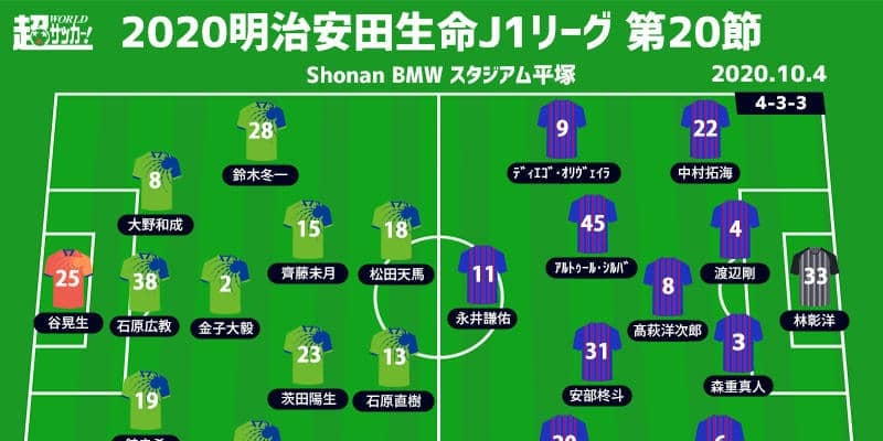 【明治安田生命J1リーグ第20節】 2020年10月4日(日) 15:00キックオフ 湘南ベルマーレ(18位/9pt) …