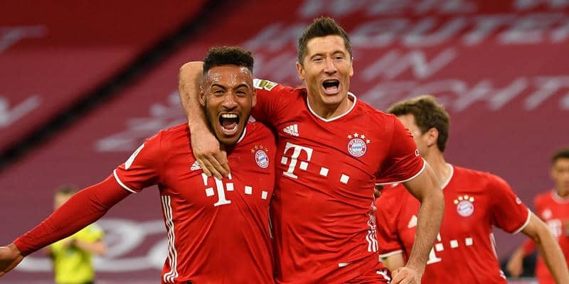 それでも40分、バイエルンが押し切る。レヴァンドフスキのヘディングシュートは一度GKの好守に阻まれるも、ルーズボールを拾ったゴールライン右のニャブリのクロスをレヴァンドフスキがボレーで蹴り込んだ。