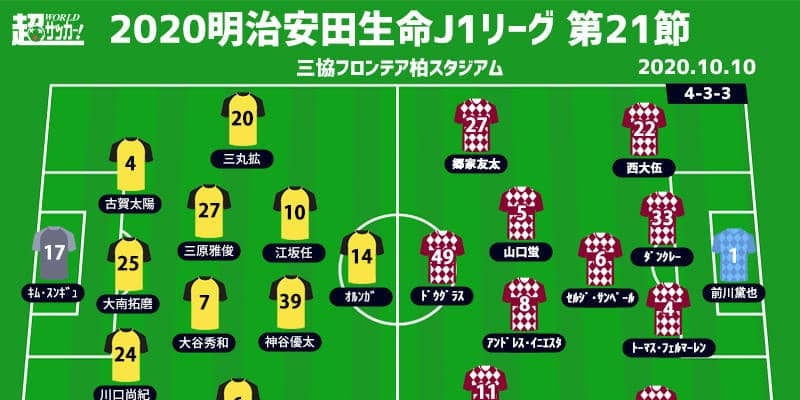 【明治安田生命J1リーグ第21節】 2020年10月10日(土) 15:00キックオフ 柏レイソル(7位/33pt) v…