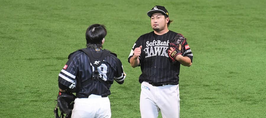 2位ロッテとの首位攻防戦でカード勝ち越しを決め首位をキープ。残りの試合に向け「試合数も少ない。全部投げるつもりで準備していきます」とフル回転を誓った。(Full-Count編集部)
