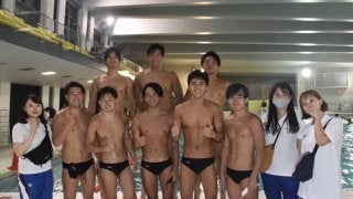 <写真・笑顔で記念撮影に応じる選手たち> 10月11日、京都アクアアリーナサブプールにて、令和2年度関西学生秋季水球競技…