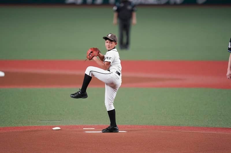 「マネードクターデー」の始球式投手権プレゼント企画として、西武鉄道沿線の少年野球チームで活躍する鴨田央翔くんがマウンドに。昨シーズンのパ・リーグ MVPである森友哉捕手がグラブを構える18.44m先まで見事なノーバウンド投球を披露してくれた。