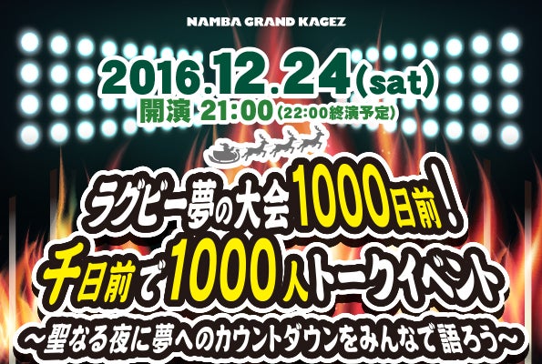 2019年日本開催のワールドカップまで千日という区切りのいい12月24日、文字通り大阪千日前にある「なんばグランド花月」でラグビーのトークイベントが開かれる。