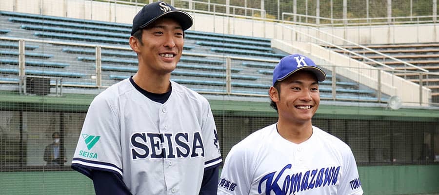 12日に苫小牧とましんスタジアムで行われた「北海道大学王座決定戦」で、ドラフト候補が投げ合った。北海道六大学を制した苫小牧駒大の伊藤大海投手(4年、駒大苫小牧)と札幌六大学を制した星槎道都大の河村説人投手(4年、白樺学園)。ともに1年遅れで現在の大学に入り直した23歳右腕は大学最後の試合を楽しみ、試合は3-3で引き分けた。