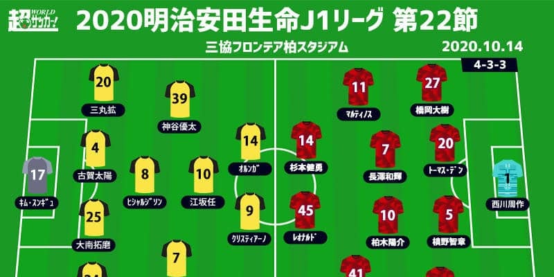【明治安田生命J1リーグ第22節】 2020年10月14日(水) 19:00キックオフ 柏レイソル(7位/36pt) v…
