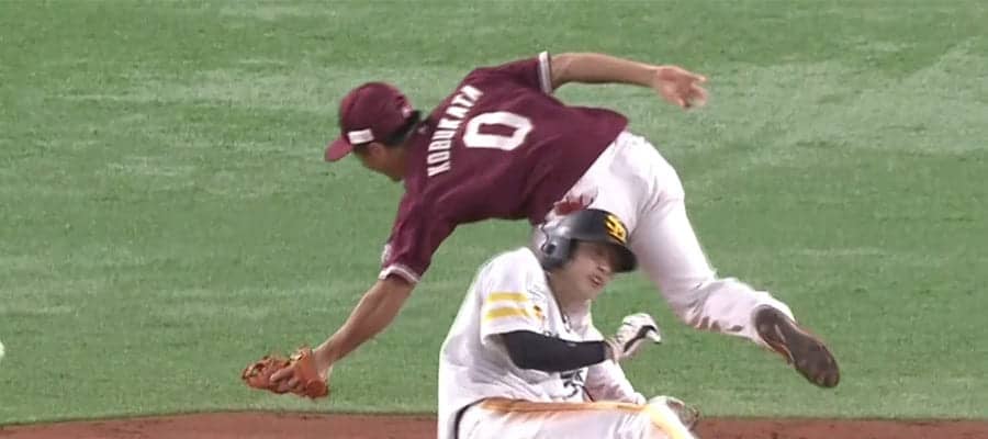 リーグトップをキープする36盗塁目を決めた周東、スタートは遅れたが…