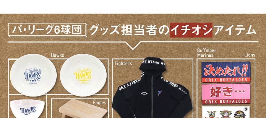 各球場で観客動員の上限が緩和され「ようやく現地に行ける!」というあなたにおすすめしたい応援アイテムを集めたパ・リーググッズ特集。第1回のTシャツ、第2回のマスコットグッズに続き、今回の第3回は「パ・リーグ6球団グッズ担当者のイチオシアイテム」をご紹介します。球団創設70年を祝う記念品や、“おうち観戦派”にもぴったりな日用品も登場します。