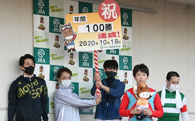 18日の京都12R・平城京S(3歳上3勝)で、3番ペオースに騎乗して1着となった松山弘平騎手(栗東・フリー)は、自身初となるJRA年間100勝を達成した。本年の年間100勝達成は、C.ルメール騎手・川田将雅騎手・福永祐一騎手に続く4人目。