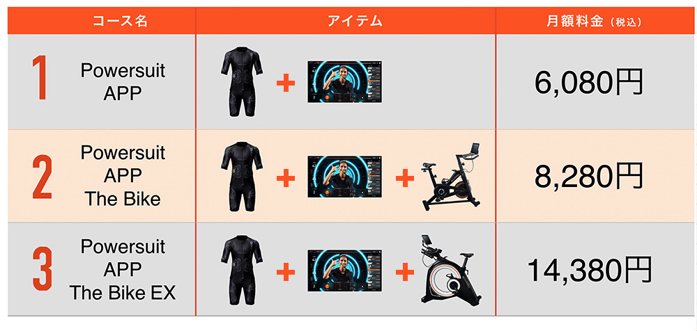 気になるお値段ですが、月額はPowersuitとアプリの利用で6080円、Powersuit・アプリ・The Bikeの利用で8280円、Powersuit・アプリ・The Bike EXの利用で14380円です。公式ホームページから申込みが可能なので、気になる方はチェックしてみてください。