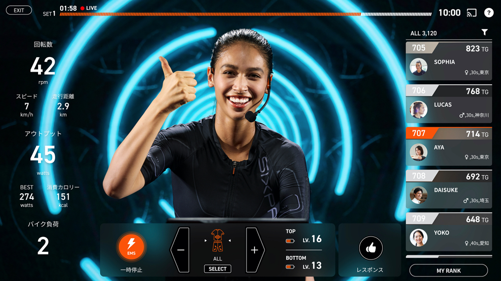 トレーニングは、独自開発された動きに加えて、音楽、映像、さらには総勢100人以上のオーディションを勝ち抜いたインストラクターから送られるエールが同時にシンクロします。