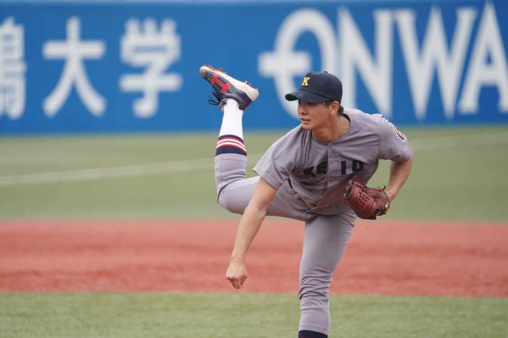 「KEIO」の背番号18はMAX155キロの直球がこの日も150キロを超え、最速152キロを記録。8月の春季リーグ戦で慶大に2-11と敗れて以来、スコアシートのコピーを寮の全部屋のドアに貼り、「必ずやり返す」と雪辱に燃えていた明大打線を封じ込めた。
