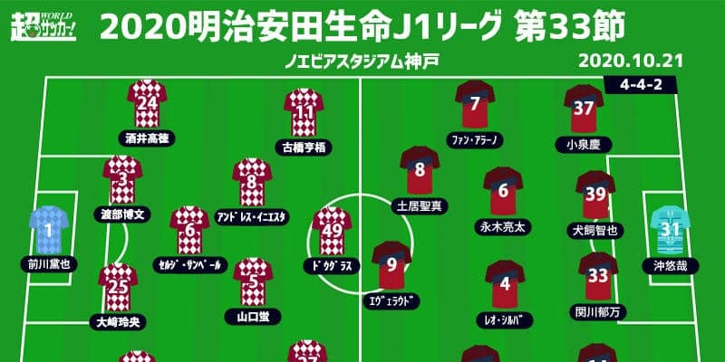 【明治安田生命J1リーグ第33節】 2020年10月21日(水) 18:00キックオフ ヴィッセル神戸(11位/33pt…