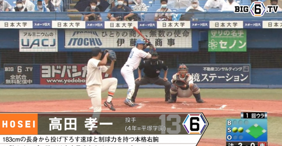 威力ある直球と抜群の制球力が武器の法大・高田孝一(④平塚学園)。東大戦2試合目に先発すると150km超えの直球を軸に7回四10奪三振四死球0の好投を披露!1ヶ月後に迫るドラフトに向けエンジン全開!