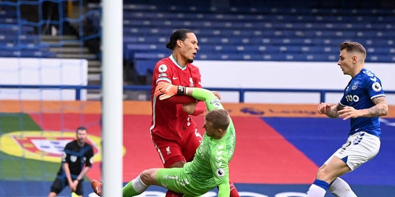 今季初のダービーだったが、最も話題をさらったのは開始5分の出来事。セットプレーの流れからクロスに合わせにいったリバプールのオランダ代表DFヴィルヒル・ファン・ダイクと、エバートンのイングランド代表GKジョーダン・ピックフォードが激突。この接触でファン・ダイクは途中交代となると、試合後の検査で右ヒザ前十字靭帯の損傷と診断。手術を余儀なくされ、長期離脱することとなった。
